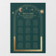 Mystical Green Gold Sun Moon Stars Astronomy Celestial Cosmic Galaxy Space Wedding Seating Chart Window Cling features a gold sun, moon and stars frame on a green background. Inside the frame is the text "Welcome" in elegant gold calligraphy script and your custom wedding reception seating chart information. Personalize by editing the text in the text boxes provided. Designed for you by ©2022 Evco Studio www.zazzle.com/store/evcostudio
