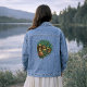 "The Vision Keeper" brings fantasy to life with this futuristic depiction of a mystical guardian, who's all knowing eyes glow intensely. Gold laced turquoise plates, adorned with yellow flowers, form a helmet around the beautiful face. The graphic art is positioned on the back for maximum impact. This denim jacket will make a unique statement piece for your wardrobe.