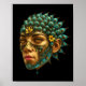 "The Vision Keeper" brings fantasy to life with this futuristic depiction of a mystical guardian, who's all knowing eyes glow intensely. Gold laced turquoise plates, adorned with yellow flowers, form a helmet around the beautiful face. This graphic poster art will make a unique statement piece for your space.