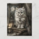 Bring a touch of magic and mystery to your Halloween season with this enchanting postcard design. Featuring an adorable fluffy grey tabby kitten with big soulful eyes, sitting on an ancient spellbook by candlelight, this artwork blends gothic charm with cozy cottagecore vibes. A full moon glows through the window, enhancing the mystical atmosphere, while the kitten’s ornate pendant and the flickering lantern add a witchy touch. Perfect for Halloween greetings, gothic stationery, or as a collectable art print for cat lovers, fantasy fans, and anyone who adores witchy aesthetics. Whether sent as a seasonal card or kept as a keepsake, this design captures the perfect balance between cute and spooky.