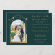 Mystical Happily Ever After Green Gold Sun Moon Astronomy Wedding Reception Celebration Invitations Invites Einvites features gold sun, moon and stars with a golden frame on a green background with your favourite photo inside. Personalize with your wedding reception celebration information. Available as a physical paper invitation and instant download printable digital invitations. Designed for you by Evco Studio www.zazzle.com/store/evcostudio