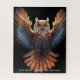 A stunning artwork featuring a majestic owl with vibrant blue feathers glowing with ethereal light. The owl's piercing blue eyes captivate with wisdom and mystery. Intricate patterns adorn its plumage, illuminated by magical glowing accents. Perfect for nature lovers and fantasy art enthusiasts. Ideal for puzzle lovers seeking a visually enchanting challenge.