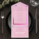 Mystical Pink Purple Celestial Sun Moon Stars Astronomy Space All In One Wedding Invitations features pink and purple sun, moon and stars frame on a pink background. Inside is your custom wedding invitation information. Below is the removable RSVP card with three meal choice options for you guests to remove and return. Personalize by editing the text in the text boxes. For additional number of meal choice options with this design please visit our store and view our collection. Meal type can be changed by simply editing the text in the personalise this design section. Personalize for individual guests by adding their custom names and addresses on each invitation. Designed for you by ©2022 Evco Studio www.zazzle.com/store/evcostudio