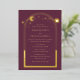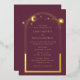 Mystical Plum Gold Sun Star Moon Astronomy Space Foil Wedding Invitations features sun, moon and stars with a gold frame on a plum background. Inside is your custom wedding invitation information. Personalize by editing the text in the text boxes. Designed for you by ©Evco Studio www.zazzle.com/store/evcostudio