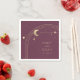 Mystical Plum Gold Sun Star Moon Astronomy Space Wedding Napkins features sun, moon and stars with a gold frame on a plum background. Personalize with your names and date or custom text in the centre. Designed for you by © Evco Studio. Part of a collection at www.zazzle.com/store/evcostudio