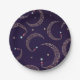 Mystical Purple Gold Filigree Moon Celestial Party Paper Plate