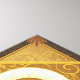 This design is inspired by a beautiful painted and embroidered decal on a Roman Catholic vestment worn for masses of the Blessed Mother. She holds a stem of lilies in her hands, a bouquet of roses frame her, a halo crowns her head.