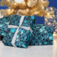 Teal and black rose damask wrapping paper with luminous stars.