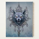 Mystical wolf head. The wolf's eyes glow in a hypnotic yellow, as if they had captured the light of the stars. They look deep into the soul of the viewer and seem to hold the knowledge of times gone by. Its mouth opens in a menacing growl. In this moment, the wolf becomes the guardian of a forgotten world, where myths come to life and the boundaries between reality and fantasy blur.