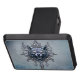 Mystical wolf head. The wolf's eyes glow in a hypnotic yellow, as if they had captured the light of the stars. They look deep into the soul of the viewer and seem to hold the knowledge of times gone by. Its mouth opens in a menacing growl. In this moment, the wolf becomes the guardian of a forgotten world, where myths come to life and the boundaries between reality and fantasy blur.