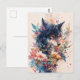 Mystical Wolf in Vibrant Watercolor Blooms Postcard