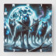 Mystical Wolves in Moonlit Forest Blue Glow Square Wall Clock