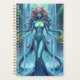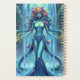 This fantasy inspired planner features a mystical water goddess with flowing blue hair and a floral crown stands by a lush waterfall, symbolizing nature's harmony and life's flow in a magical forest.