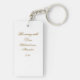 The reverse side offers a minimalist contrast: a clean white background featuring an elegant script in a refined gold-toned hue. The text, signature, and year can be easily customized, making this keyring a truly unique and personalized gift.