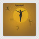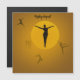 Within this enigmatic circle, a striking silhouette takes centre stage. A woman, her contours starkly black against the golden backdrop, strikes a graceful and expressive dance pose. Her form conveys strength and fluidity, drawing the eye with its allure.