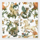 A menagerie of fantastical creatures — including dragons, unicorn-like horses, antlered deer-serpents, and whimsical fox-like beasts with lush swirling foliage and blooming flowers.