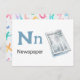 "Letter N is for Newspaper" in our Alphabet Flash Card set. Get all 26 letters of the alphabet! A double-sided postcard that is great for memory games and teaching, geared for education, schools, teachers and homeschoolers for kindergarten and babies. All text is editable if you need to customize.