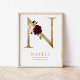 N Letter Monogram Name Marsala Floral Nursery Poster