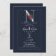 N Monogram Last Initial Modern Blue Floral Wedding Invitation