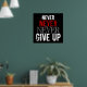 N'abandonnez jamais. Art Motivationnel. Design Par Elke Clarke ©2010. Customisez avec votre choix de couleurs. Idéal pour les bureaux et les espaces de travail. Art d'affiche motivant mais tendance. À la GALERIE MONOGRAM, nous aimons utiliser les lettres pour créer des designs agréables. Pour le défi d'affiches de Zazzle, nous pensions que nous prendrions en compte l'économie et l'année écoulée dans l'élaboration de notre design. L'expression n'est pas nouvelle mais l'affichage graphique et le message prévu résonne plus que jamais avec nous tous. N'Abandonne Jamais !