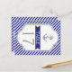 Carte postale bleu marine, rayures blanches et mariage nautique d'ancre. Un design motif rayé design avec rayures bleu marine, rayures diagonales blanches, une ancre avec un coeur et une corde bleu et votre texte dans un cadre avec une bannière. Moderne mais avec un look vintage dans un sens. Vous pouvez modifier la couleur arrière - plan et la couleur du texte en choisissant parmi plus de 200 couleurs à partir du graphique en couleurs Zazzle. Ce design élégant est un modèle entièrement personnalisable et fait partie d'un ensemble mariage parfait pour un mariage d'été.