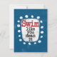 Un design typographique mignon qui dit "nagez comme vous le voulez". Il présente du texte noir et rouge sur un rectangle blanc avec des points blancs amusants et amusants qui l'entourent, le tout sur un arrière - plan bleu.