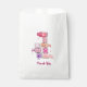 Fun favour bag features stacked bottles of nail polish in a variety of colours with customizable pink text. Perfect for salon giveaways and spa parties.