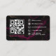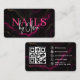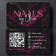 Promote your nail brand with this nail specialist artist QR code pink black business card. The bold pink and black color palette adds a stylish, eye-catching look while the integrated QR code makes it easy for clients to access booking links, social media, or your online portfolio. Clean typography keeps contact details clear and professional, making this card ideal for nail specialists, nail artists, and nail technicians seeking a modern, print-ready design with digital convenience.