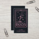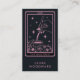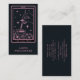 A unique makeup artist pink on black business card featuring a nail tech tarot card style. A unique style mashup of the tarot and your occupation.