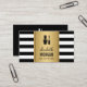 NAIL TECHNICIAN Elegant Gold Black White Stripes Business Card