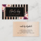 Design features burgundy and pink flowers over greenery leaves, a black centre outlined in a double rose gold glitter frame and a black and rose gold striped background. The back of the card features a simple light rose gold background.