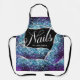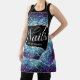 Trendy chic apron for nail technician features silver faux foil and glitter and typography script Nails on a black background. Personalize further with a name.