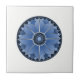 White ceramic tile with a blue floral spiritual lotus flower mandala print. Matching home decor available at the ScriptoGraphic Design Store.
