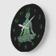 Female Yoga Pose Colourful Silhouette Personalized wall clock with green numbers. She seems to glow in the dark with this circle art in aqua, turquoise, blues, greens, mauves and dusty pink on a black background. You can customize and personalize it by adding or changing images, text, background, and clock style. Check out coordinating customizable home decor products.