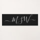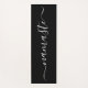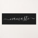 Namaste Initials Personalized White Black Yoga Mat. Namaste message in white script handwriting with scrollwork on front of black yoga mat. Your or gift recipient's easily customized monogram initials or name in white script handlettering with scrollwork on back of black yoga mat. Simple minimalistic reversible 2-sided customized black mat perfect for midlife or any age. Step by Step Inspiration Series available exclusively on Zazzle at zazzle.com/store/KrisHarty, designed by international designer, Kris Harty. © 2020 Kris Harty Step By Step Inspiration