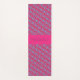 Grab this one of a kind custom yoga mat featuring great vibrant watercolor spots in a deep pink with a blue background. This mat has a pink sash with customizable name. Head to yoga class in style! Back of yoga mat is solid lavender.