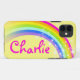 Help protect your child's iphone from knocks and kiddy accidents, with this pretty rainbow design girls tough iphone case. Personalise with your childs name up to 7 letters. This example reads" Charlie" Exclusively designed and illustrated by Sarah Trett.