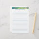 Painting of abstract diamond shapes of blue, green, and purple, on a yellow background is printed across the top of stationery, and has a placeholder to add a name and/or message. The body of the stationery is lined for easier writing.