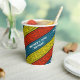 Add the birthday boy or girl's name and age to these colourful party paper cups which give a modern twist on a Celtic stripe. Use "Personalize this template" to tweak the "Matthew's 30th Birthday!" text to your preferred name, age and event. White text sits on stripes of red, yellow and blue over a dark blue.
