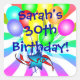 A bright, fun colourful balloon bouquet on a rainbow of colourful ribbon swirls ready for you to personalize with any name and birthday age. For any age, including over the hill birthdays! Shown is "Sarah's 30th Birthday!" A great special occasion fun and colourful sticker! Shown is the square sticker.