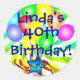 A bright, fun colourful balloon bouquet on a rainbow of colourful ribbon swirls ready for you to personalize with any name and birthday age. For any age, including over the hill birthdays! Shown is "Name's 40th Birthday!" A great special occasion fun and colourful sticker! Shown is the popular round shape sticker or seal. Great stickers for kids, teens, and men and women of any age!