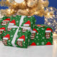 Fun Christmas Football Wrapping Paper with his NAME, JERSEY NUMBER or Monogram or Delete it. Football with Santa Hat surrounded by stars and snow flakes. You can CHANGE the white text and green background colours to ANY COLORS.
