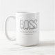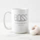 A large BOSS mug with your name, the name of your company, and its establishment date. The design has a grey and black colour scheme. Simply add your information, add this mug to your cart, and drink your coffee like the boss that you are.