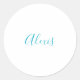 Name Calligraphy Script Plain Simple White Blue Classic Round Sticker