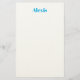 Name Calligraphy Script Plain Simple White Blue Stationery