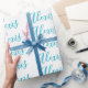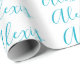 Name Calligraphy Script Plain Simple White Blue Wrapping Paper