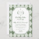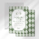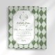 Celebrate your new addition with this "Little Putter on the Way" golf-themed baby shower invitation. Featuring classic preppy sage green argyle and a vintage monogram crest illustration, this elegant design is perfect for a country club luncheon or a sporty backyard celebration. Easily customize with your event details to create a timeless keepsakes for the par-tee!