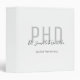 A PhD binder that features the PhD’s name and field of study. The binder includes the name in a handwriting script font and a black and grey design. Simply add your info to the binder, add this item to your cart, and have someplace to keep your copious amounts of research.