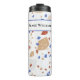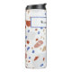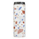 Blue, brick red and tan marble chips retro Terrazzo pattern on white background decorates this 12oz. mid-century thermal tumbler. Easily change name with the Template provided. Stainless body, plastic lid. Vacuum-sealed double walled construction retains temperature, hot or cold. See "About" this product for more information and care.