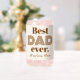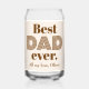 Popular beverage glass featuring DAD in an eye-catching retro font, 'Best ever.' in bold typography lettering, a linen color band around the glass and modern name. The text is an 'aged copper' color. This stylish 16oz drinking glass resembles a classic beverage can design. Easily change text and name to make it yours using the Template provided. To edit and change font style, font color, size and more-- use the Design Tool. Made in the USA. See "About" at side for more information. ===>Hand wash<===